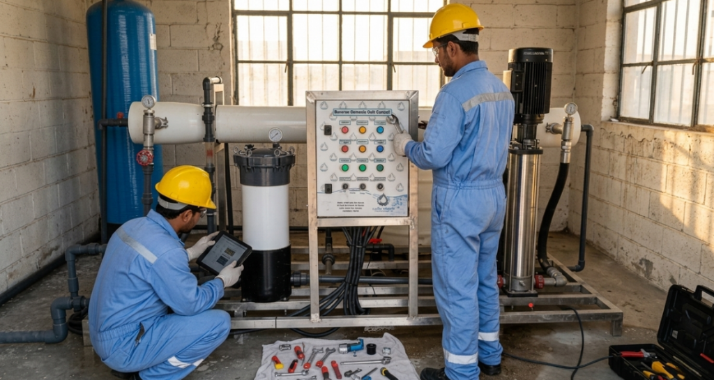 نعمل على توفير رعاية هندسية شاملة لمحطات تحلية المياه وتقنيات التناضح العكسي ($RO$)، بهدف الحفاظ على استمرارية الإنتاجية بأعلى المعايير التشغيلية. تتركز استراتيجيتنا في الصيانة على محورين أساسيين: الاستباقية لتقليل الهدر، والدقة لضمان نقاء المخرج المائي.