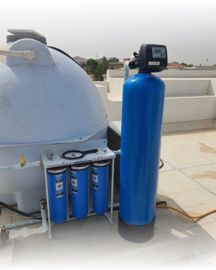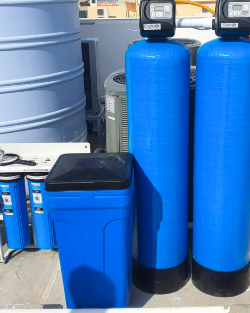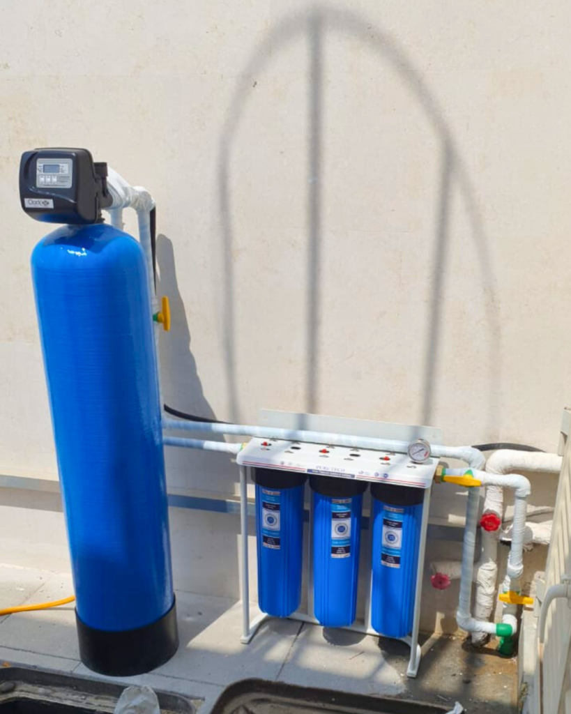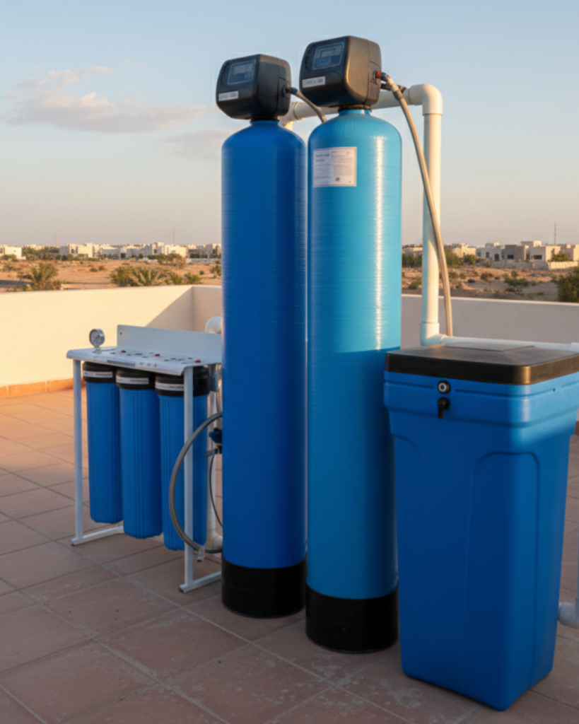 “وداعاً للكلس والجفاف” بعد أن تصبح المياه صافية، يأتي دور السوفتنر لمعالجة “عسر المياه” (Hard Water) الناتج عن أيونات الكالسيوم والمغنيسيوم.