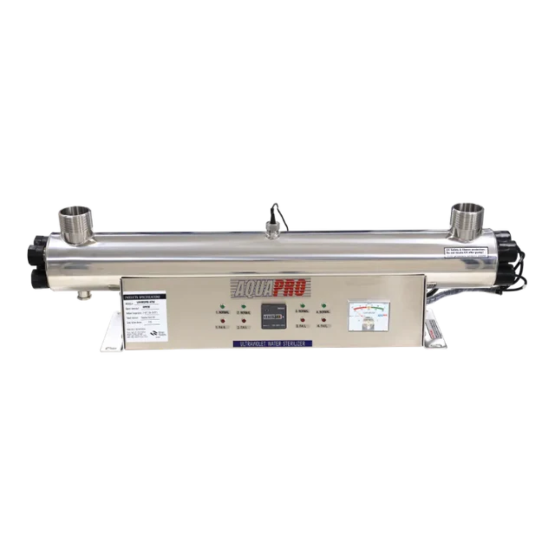 تدفق مثالي للمشاريع الكبرى: بسعة 48 جالون في الدقيقة ووصلات مقاس 2 بوصة، صُمم هذا الجهاز ليوضع على الخطوط الرئيسية الكبيرة، ليقوم بتعقيم المياه لحظياً أثناء مرورها، مما يضمن وصول مياه آمنة لآلاف الليترات في الساعة.
